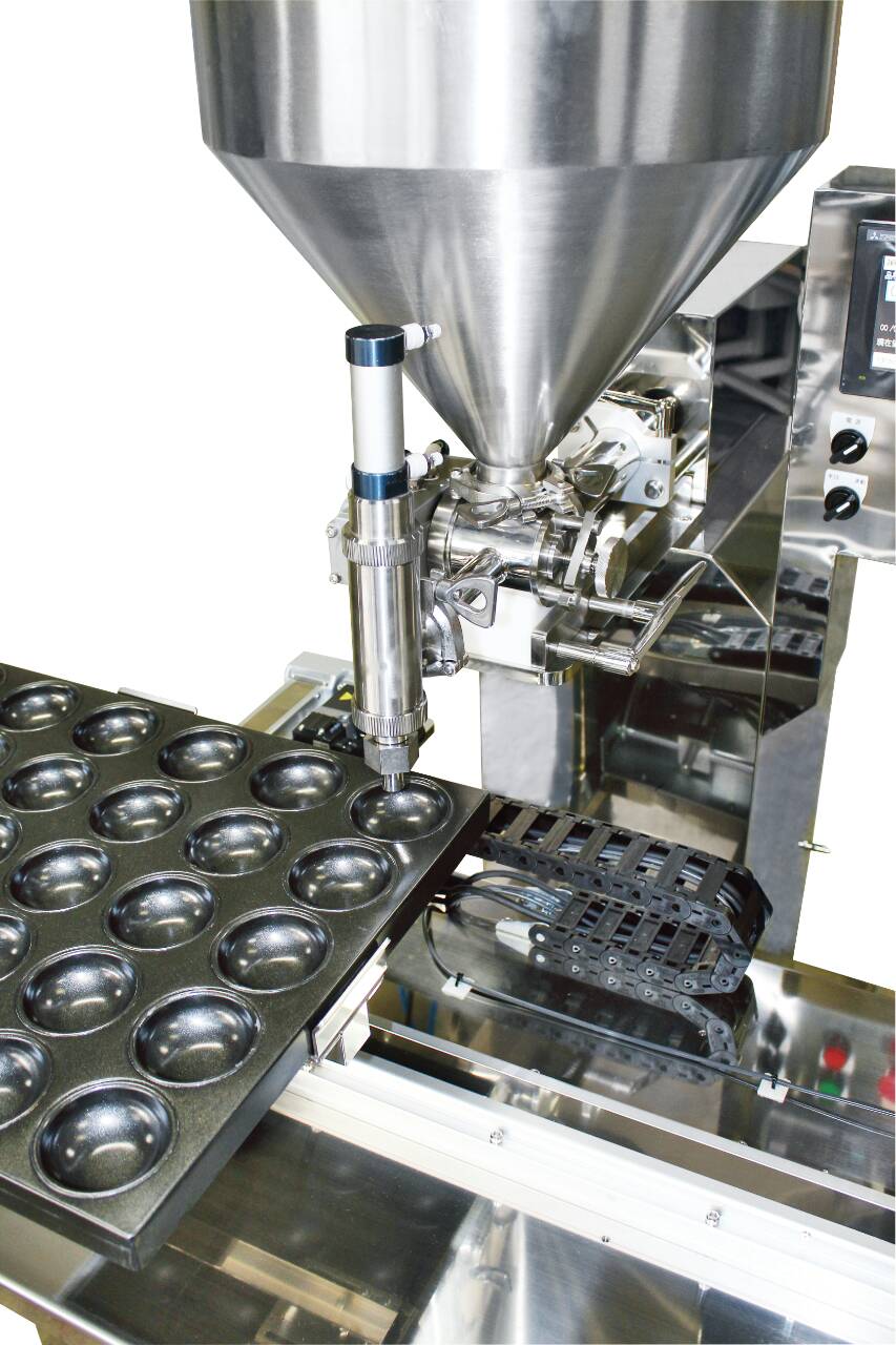 特徴:天板上の自由な位置に充填できます 工具レスで分解洗浄が簡単 タッチパネルで簡単操作 多品種登録が可能 ピストン構造なので生地へのダメージがない ホット充填が可能 オールステンレス製なので安心安全・衛生的 お客様のご要望にお応えできます。詳しくは弊社までご相談ください。